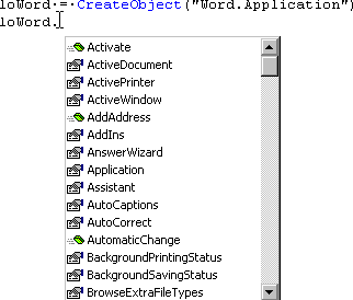 References to those variables within the code window will produce appropriate prompts for that type of datatype or object.
