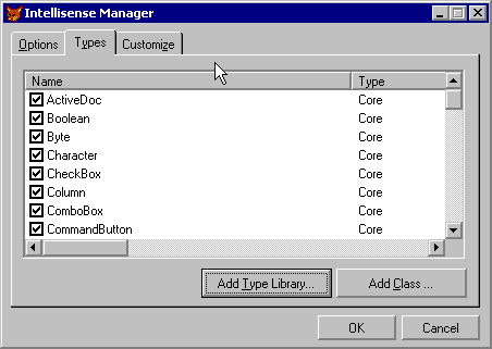 Figure 8: The Types Tab of the IntelliSense Manager