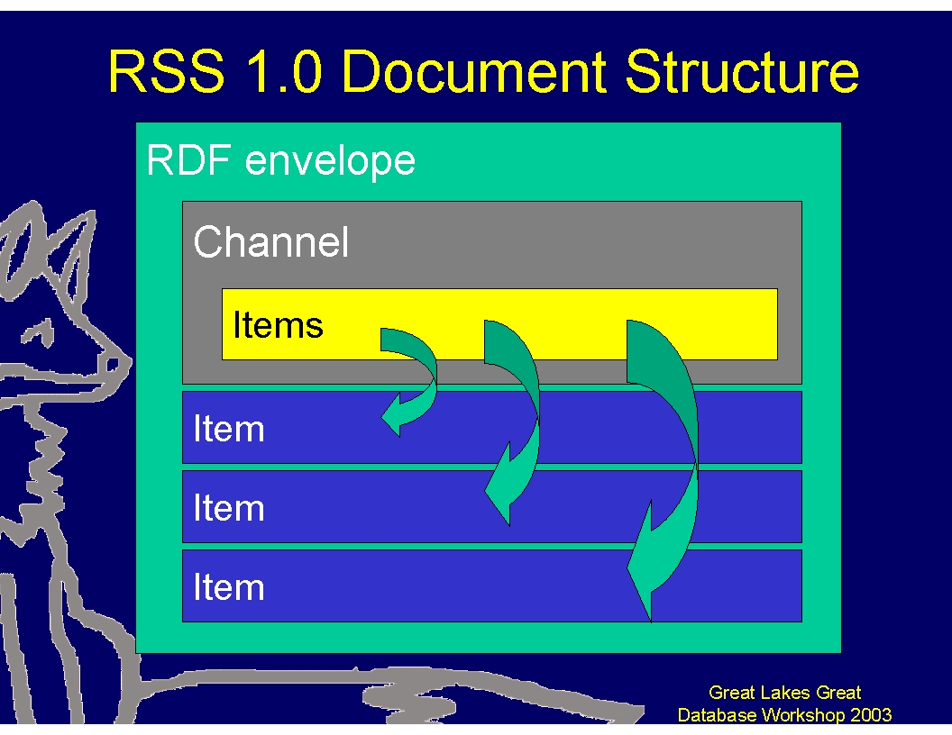 Resource Description Framework (RDF) and RDF Site Summary (RSS) have an interesting and mixed history. One of their forebears comes from academia, where technologists and linguists are attempting to parse the meaning of the web. Another root is from within the web community, searching for ways to find, search, and categorize the web to advance it to the next generation, summed up in Tim Berners-Lee’s “Semantic Web” (see references). Still others were far more practically just trying to get their jobs done and glommed onto a new format that made sense for what they were trying to do.